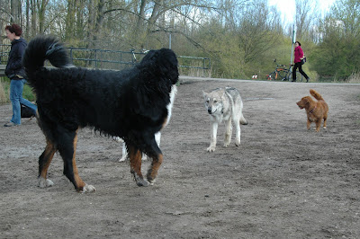 Eerst werden we in groepjes op een soort tja, ontmoetingsveldje losgelaten zodat alle honden konden zien hoe leuk ik was en ik me vooral op Ayla wilde storten. Nadat ik gister zeg maar op Lica geoefend heb, heb ik de smaak wel te pakken.